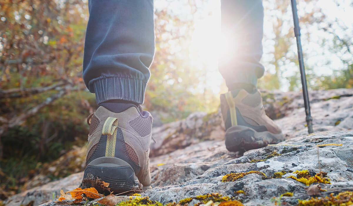 Wandern: feste Schuhe, Wasser, Snack, Regenjacke, Karte/GPX, Notfallset, Sonnen-/Mückenschutz.